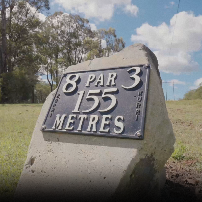 A mid-length par 3 with a green surrounded by bunkers. Wind conditions can affect club choice.